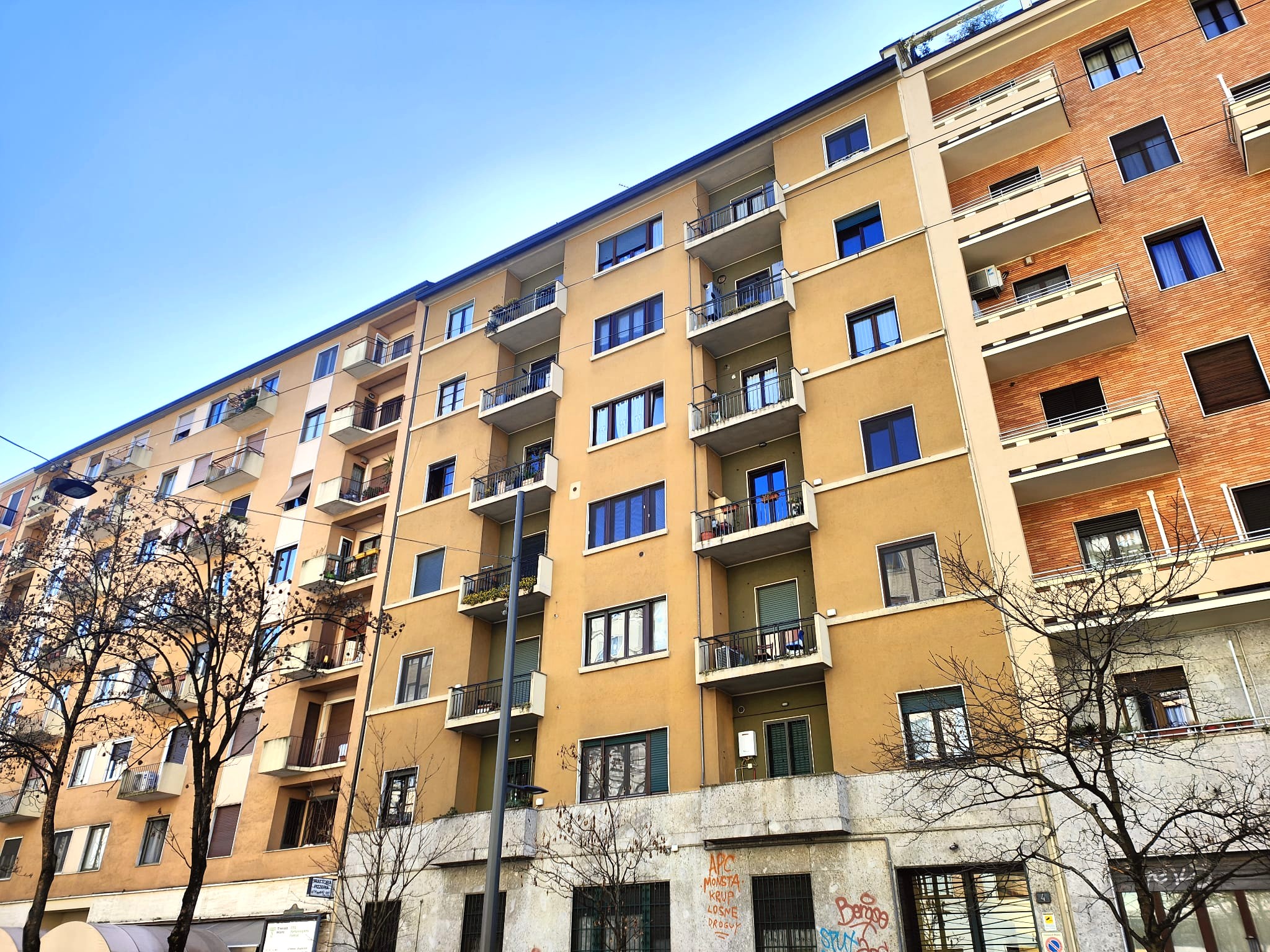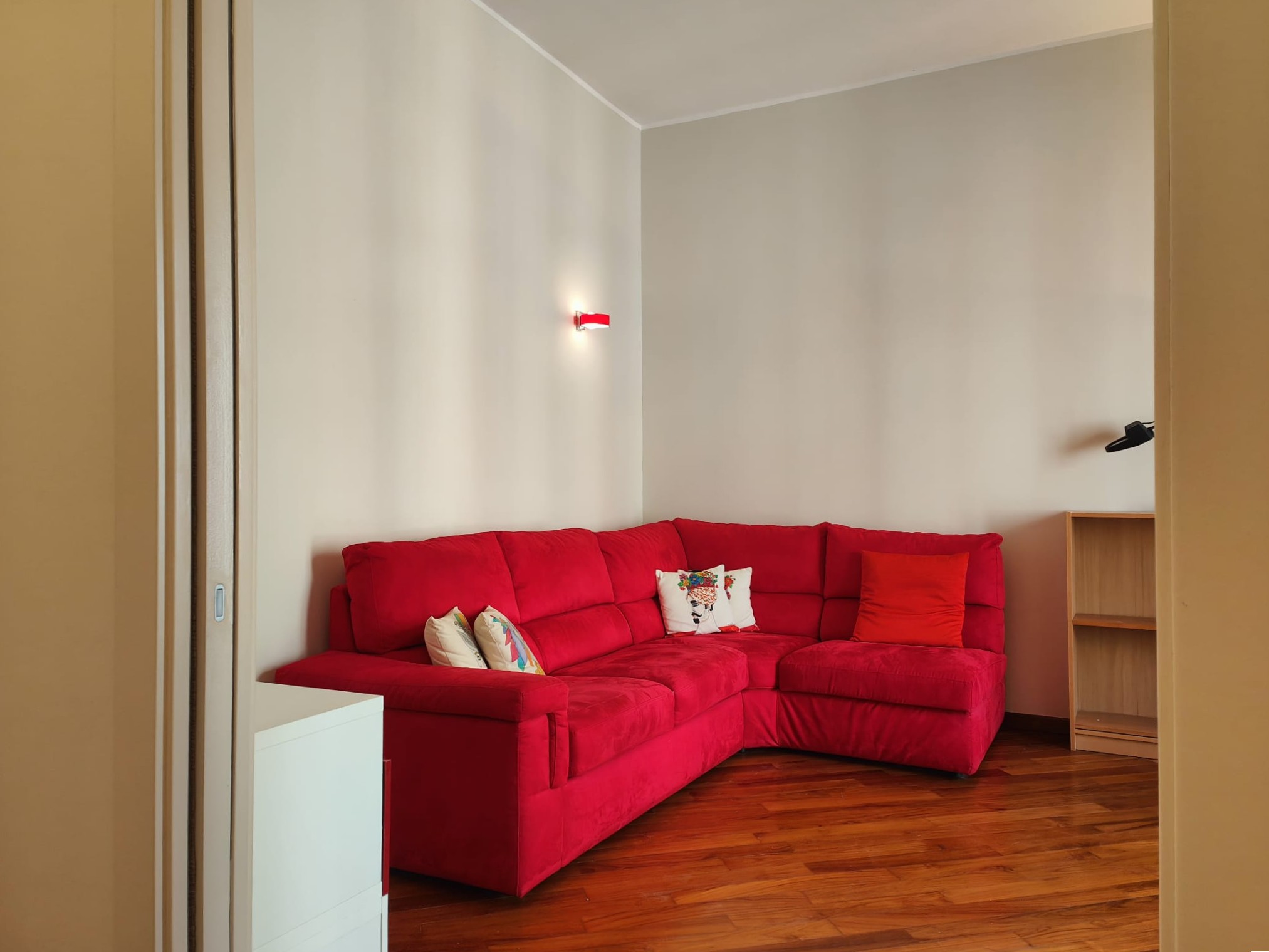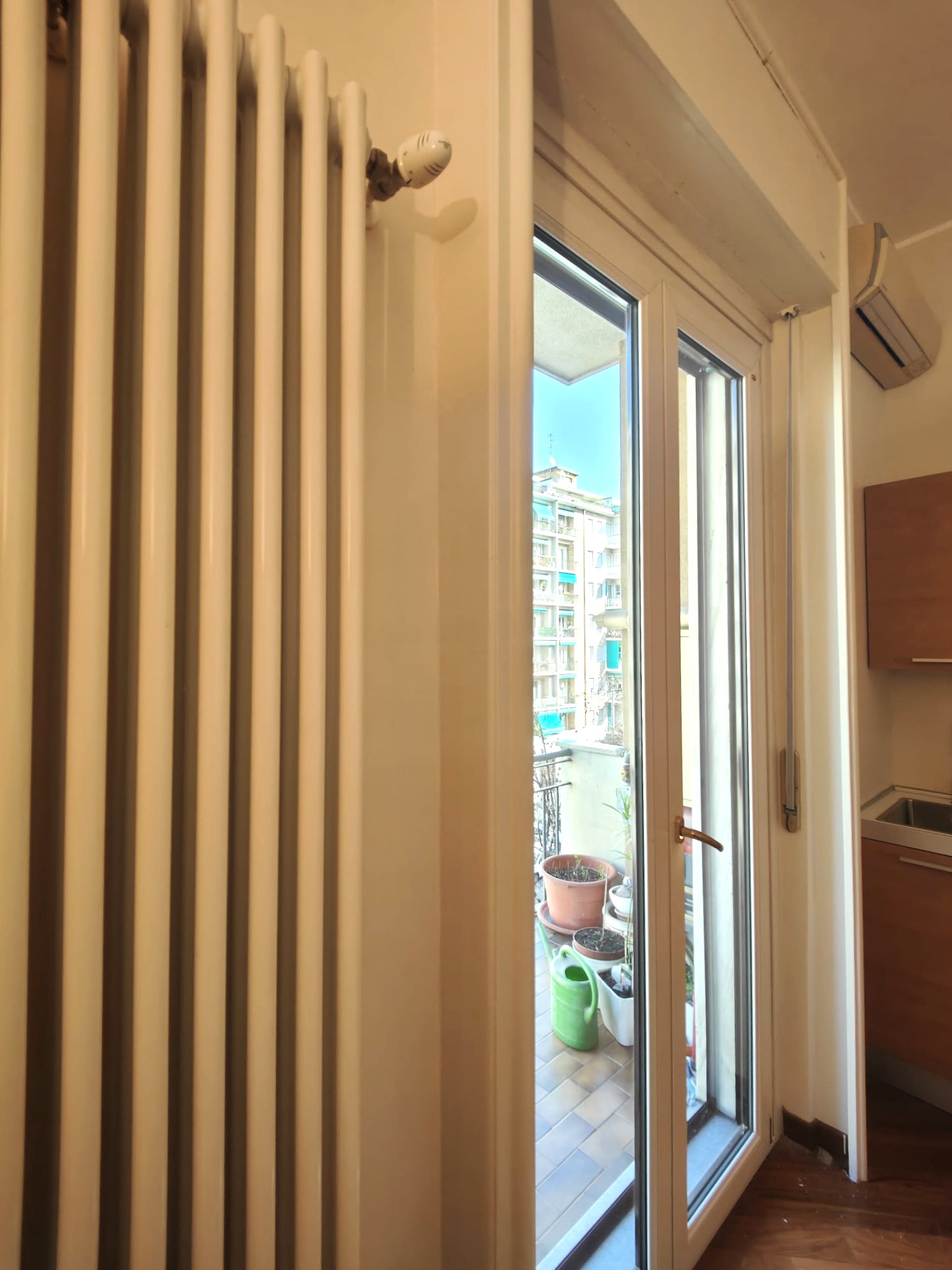 Il soggiorno è dotato di porta finestra da cui si accede al balcone, l’esposizione è unica esterna su Via Strambio.