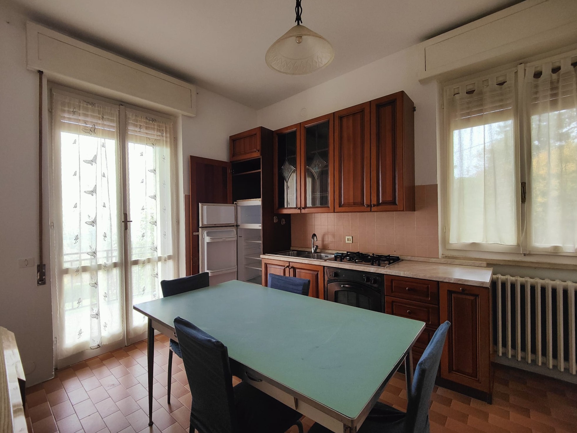 -al piano rialzato troviamo l’abitazione con ingresso su disimpegno, cucina abitabile che dà su ampia balconata ad angolo, soggiorno, due ampie camere da letto, di cui una con ulteriore balcone, e bagno finestrato;